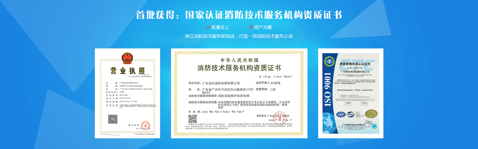 广东太阳成集团tyc122cc入口检测有限公司是一家大型综合性消防服务公司,植根于三十年的消防行业从业经验,背靠海安和运龙两家消防设备公司的强大实力, 拥有庞大的广东消防安全评估技术团队和专业优质的消防气瓶定期管理,是消防技术服务的新锐力量,依据物价局核定的收费标准和相关法律、法规、消防技术规范,提供第三方的建筑消防设施检测、 维修、保养等服务,并依法依规出具消防设施检测技术证明文件,作为消防监督部门的消防验收依据...